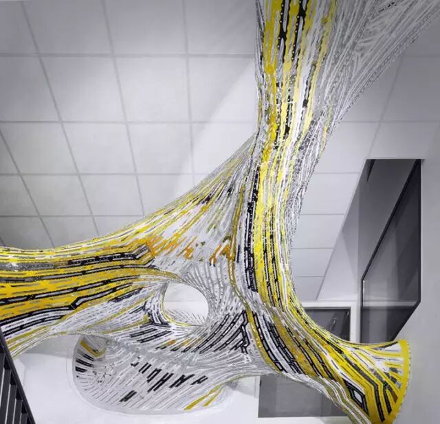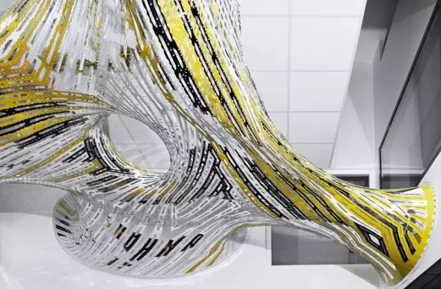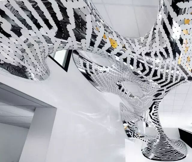 通过数据追踪最终形成可物化的非线形铝条,通过铆钉连接,